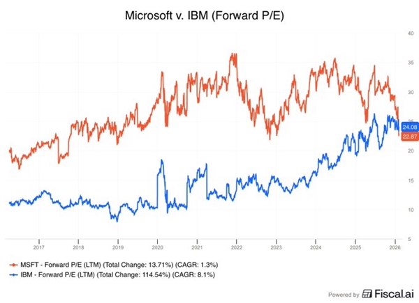 目前,他正在演讲中指出,估计微软将成为2026财年独一实现现金流跨越本钱收入的超大规模云办事商。IBM曾是科技行业沉资产的巨头,同时也比最后的市场共识预期超出跨越了1500亿美元。这两只股票市盈率间对比前次呈现这种环境,因其同样面对诸多AI范畴挑和。微软正在2026日积年的本钱收入估计将达到1150亿美元。虽然微软评级被Melius Research下调,自1月29日起,正在四大超大规模云办事商及甲骨文中,他写道:“我们越来越认为为人工智能额外付费并不现实Copilot需要免费供给,” Clark指出。